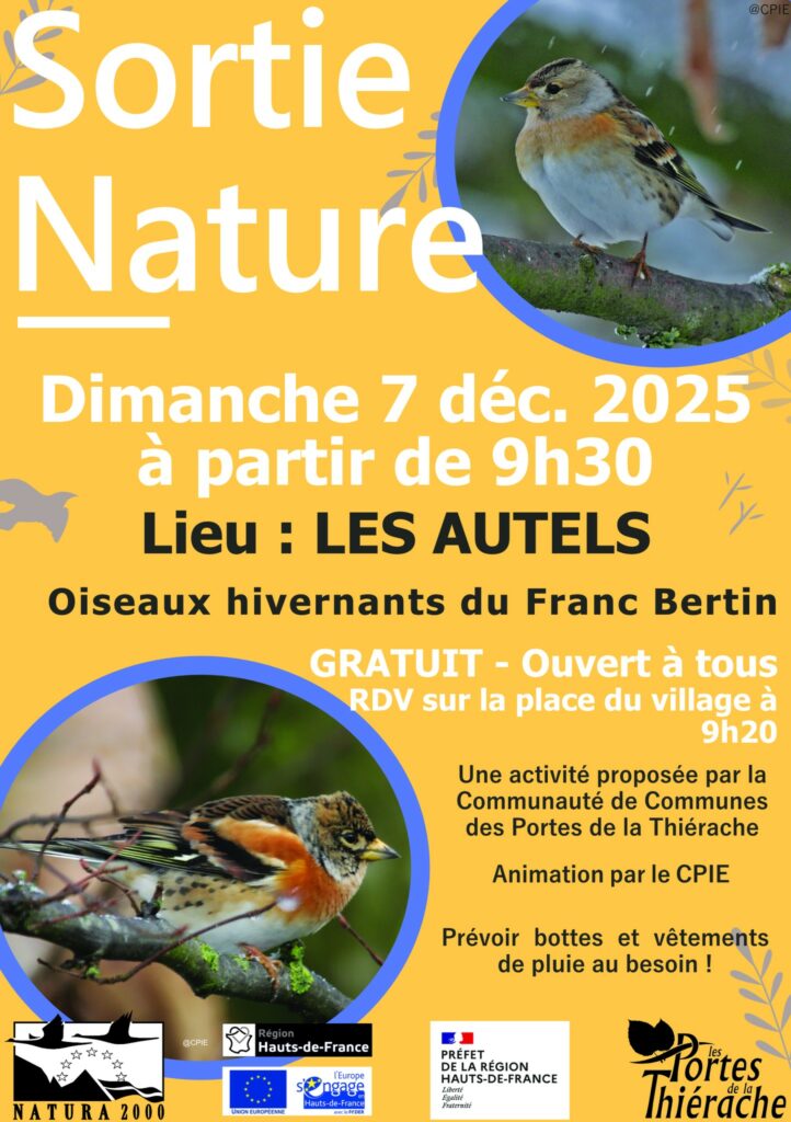 Le dimanche 7 décembre, retrouvez le CPIE Aisne – antenne Thiérache pour partir à la découverte des oiseaux hivernants à partir du village des Autels.